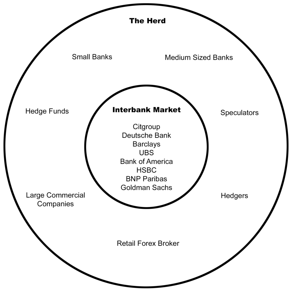 The herd trades on the outer trading networks, as I stated earlier (e.g. Currenex). There are always buyers and sellers in any market. The outer networks aim to match all of the herd’s buy orders with all of the herd’s sell orders.